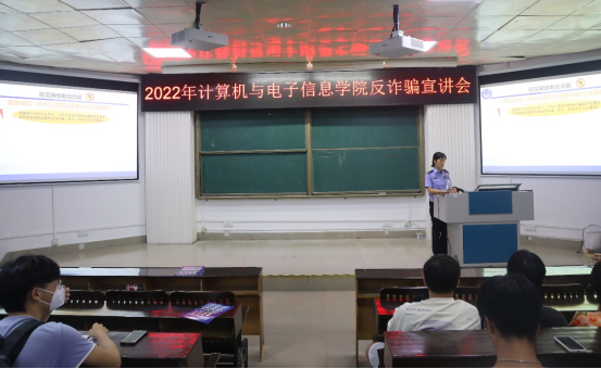 为提高新生安全防范意识,杜绝被诈骗事件的发生,2022年9月23日晚上,在学院214报告厅,69书吧