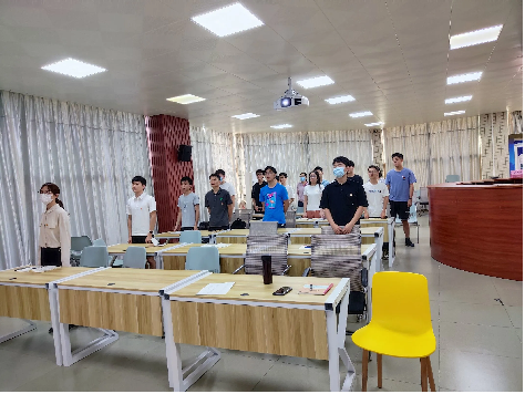 最后,支部全体党员起立一起诵读习近平总书记对青年同志的寄语,大家表示要坚定不移听党话、跟党走,怀抱梦想又脚踏实地,敢想敢为又善作善成,立志做有理想、敢担当、能吃苦、肯奋斗的新时代好青年,让青春在全面建设社会主义现代化国家的火热实践中绽放绚丽之花!