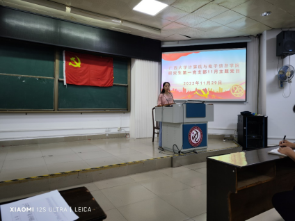 研究生第一党支部在学院214报告厅,组织开展11月份主题党日活动,集体学习研讨《习近平谈治国理政》第四卷第十一、十二专题以及集体观看《红色传奇》第二季相关故事视频。本次主题党日活动由研究生第一党支部副书记刘仪菲同志主持,党支部全体党员参加。