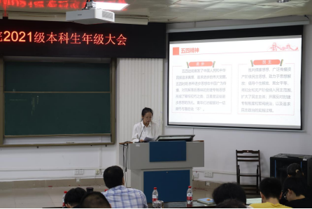 此次年级大会的召开,不仅宣扬了五四精神,强化了纪律与安全的重要性,还在学业规划和职业发展方面为同学们提供了指导,有利于2021级本科生统一思想,明确目标,深刻意识新时代青年的责任与担当,共同努力、砥砺前行,为学院各项事业高质量发展贡献青春力量。