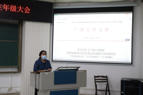 会议第三项议程,学院教学办甘瑜萍老师围绕推免名额、申请条件和综合素质加分项细则、材料报送要求等,向同学们全面细致解读了《69书吧