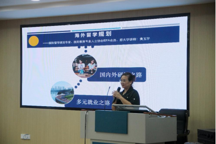 接着,周开印学长及其团队成员进行就业与学业规划经验分享。周开印学长从用人单位选人标准、把握面试机会和提升面试能力三个维度进行深入浅出地讲解。团队成员黄玉宇老师和邱瑜之老师分别就“海外留学规划”及“如何选择和提升自己的软实力”两个话题进行分享,从留学趋势、申请材料准备到背景提升等方面为同学们指明方向。