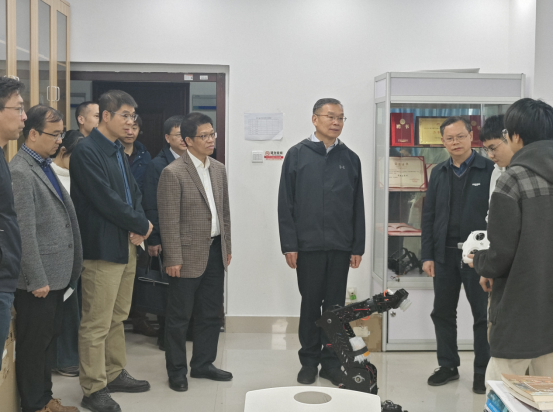 305无人机与机器人图形像与虚拟现实技术物联网技术实验室、中国-柬埔寨智能制造技术联合实验室看望留校师生。韩校长观摩了学生团队正在调试测试的robomaster机甲大师比赛项目——六轴机械臂机器人,该项目是由69书吧