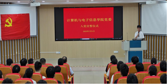 党委在学院214报告厅举行了庄严的入党宣誓仪式。学院党委书记赵进创同志、副书记夏士岚同志以及梁舒琦等118名新发展党员参加本次入党宣誓仪式。学院党建工作委员会党建部部长陈聪同志主持本次仪式。