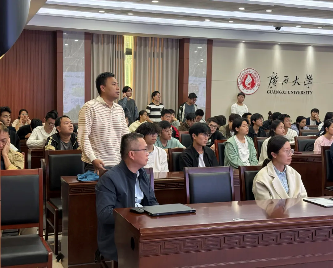 互动交流环节,现场师生围绕 “RISC-V 在大模型训练中的实际应用瓶颈”“国产基础软件如何突破国际技术壁垒”“学生在 AI 算力领域的研究方向选择” 等话题踊跃提问。谢涛院士以深厚的学术功底和丰富的产业经验,逐一耐心解答,既纠正了部分认知误区,又引导师生从跨学科视角思考问题,现场氛围热烈而活跃,思想碰撞的火花不断涌现。