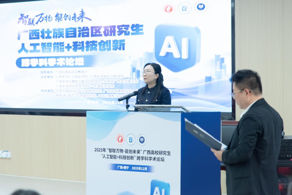 主动服务国家战略与区域发展需求,今年正式成立人工智能学院,并成功招收首届本科生。本次论坛的举办,是学校推动学科交叉融合、培育高层次创新型人才的重要举措,旨在为全区研究生搭建一个开放、协同、前沿的学术对话平台,助力打造面向东盟的人工智能创新高地。