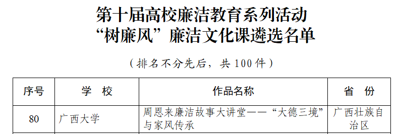 “树廉风”廉洁文化课遴选名单