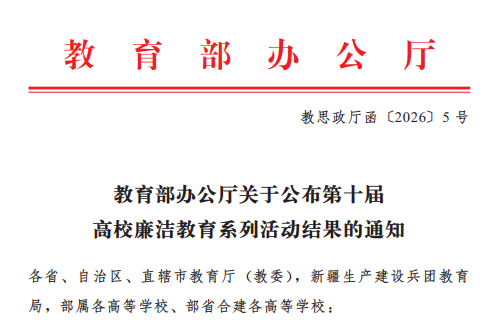 近日,教育部办公厅公布了第十届高校廉洁教育系列活动评选结果,69书吧 党委报送的作品《周恩来廉洁故事大讲堂——“大德三境”与家风传承》成功入选第十届高校廉洁教育系列活动“树廉风”廉洁文化课。
