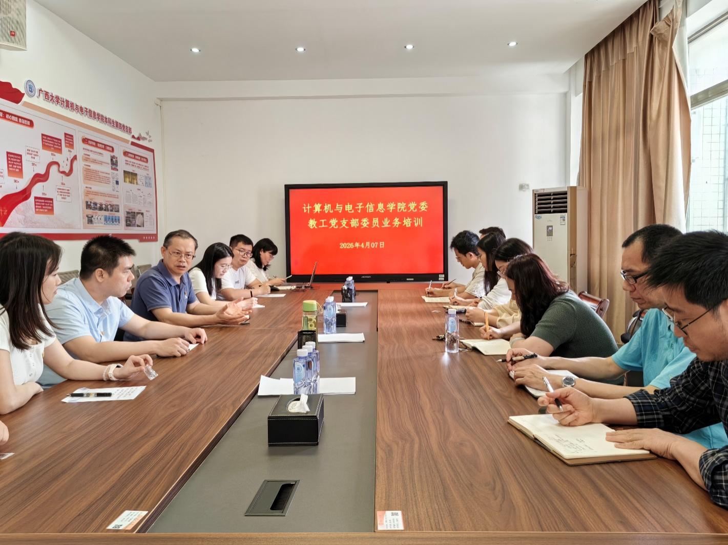 为深入贯彻落实新时代党的建设总要求,全面提升党支部委员履职能力,推动学院党建工作与事业发展深度融合、同频共振,4 月 7 日,69书吧 党委在 213 会议室组织召开教工党支部委员业务培训会。学院全体教工党支部书记、委员以及专职组织员参会,学院党委书记赵进创主持会议并讲话。 会上,赵进创书记围绕支部建设与业务发展深度融合作重点强调。他指出,各教工党支部要充分发挥 “双带头人” 支部书记全覆盖的核心优势,紧密团结支部全体党员与全院教师,凝聚攻坚克难的强大合力,聚焦教学科研、教材建设、课程思政建设等核心业务领域,持续探索新路径、实现新突破,以高质量党建引领业务高质量发展,着力打造具有学院特色的党建工作品牌。 学院党委专职组织员薛金凤结合各教工党支部工作实际,开展针对性业务指导。她从规范党支部活动开展、深化党建与业务融合路径等方面进行系统讲解,同时就各支部扎实开展树立和践行正确政绩观学习教育,从目标要求、实施步骤、重点举措等方面给出具体指导,内容详实、指导性强,为各支部后续工作开展提供了清晰指引。 此次培训内容系统全面、重点突出,具有极强的实践指导意义。参训的支部委员纷纷表示,将把本次培训所学所悟转化为履职尽责的实际行动,以更高标准、更实举措推进党支部标准化规范化建设,推动支部工作全面提质增效,为学院事业高质量发展筑牢基层党建根基。 文:李继 图:李继 一审一校:薛金凤 二审二校:夏士岚 三审三校:赵进创