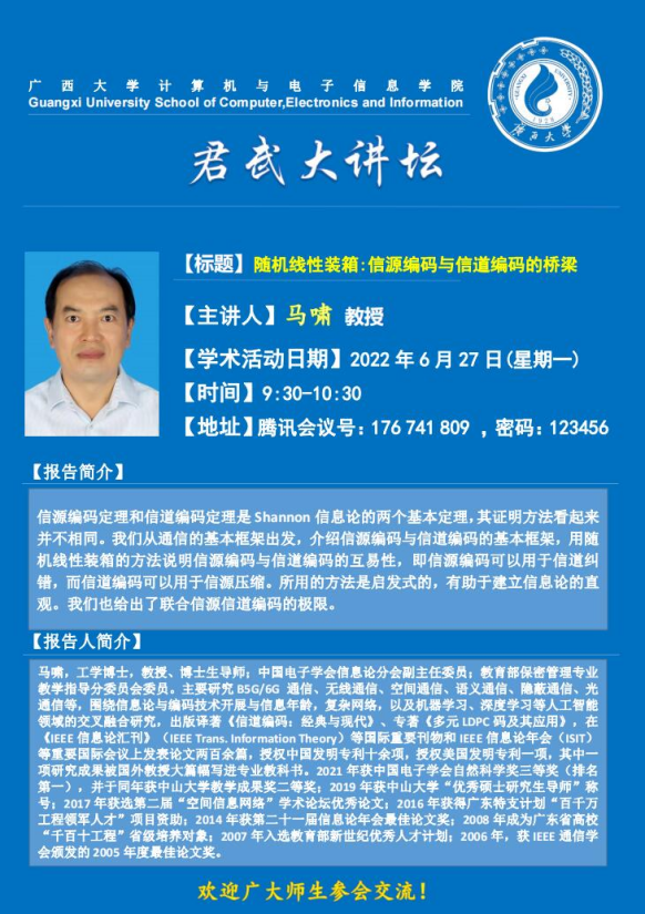 69书吧 君武大讲坛:随机线性装箱: 信源编码与信道编码的桥梁
