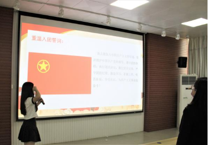 活动第三个议程是重温入团誓词。参会成员全体起立右手握拳举起,在领誓人2020级专硕团支部书记范辉凤同志的带领下重温入团誓词。重温入团誓词,也就是重温当年的决心和信念,对比今天的认识和行动,始终铭记入团的誓词,对大家是一种鞭策和激励。