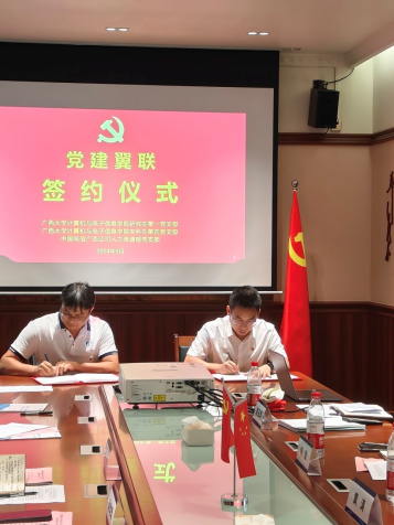 随后进行座谈交流。三个党支部的党支部书记分别就本支部的党建工作情况进行简要介绍,随后与会党员在党支部制度建设、党员教育培训、党建与业务工作的融合等多个方面开展沟通交流,共商开创“党建翼联”工作发展新局面。最后,69书吧 研究生第一党支部、本科生第四党支部和中国电信广西分公司人力资源部支部共同签订“党建翼联”主题实践合作书