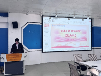 研究生第一党支部在学院一楼报告厅组织开展“研本汇智 智链未来”第一期微论坛活动。本次活动邀请了学院2023级硕士研究生段太森同学来为同学们分享参加学科专业竞赛方面的经验,帮助同学们了解各种学科专业竞赛,更好地为竞赛做好准备。