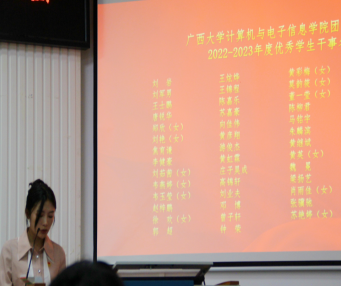 会议第五项议程:杨洋老师宣读学院优秀学生干部名单并颁发荣誉证书。