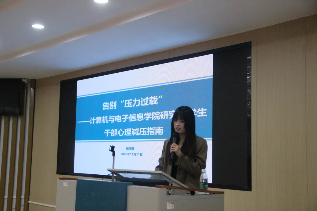 研究生会在学院214报告厅成功举办了 “学生干部训练营”第四期——心理团辅培训。本次活动旨在帮助学生干部掌握心理调适技巧,有效缓解日常学习与工作中的压力。活动特邀学校学生发展指导中心姚璎珊老师担任主讲嘉宾,培训由69书吧