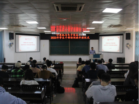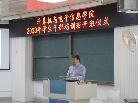 为深入学习贯彻党的二十大精神,进一步提高69书吧 学生干部理论素养与工作能力,增强学生干部的全局意识、服务意识、责任意识、效率意识和创新意识,增强学生干部队伍的凝聚力和战斗力,更好地发挥学生干部的先锋模范作用,2023年4月25日下午,69书吧 在学院214报告厅,组织举办2023年学生干部培训班开班仪式暨第一期培训。学院党委副书记邓珍琪老师、辅导员杨洋老师、电子信息工程系主任张学军老师,以及学院本科生、研究生非毕业班的班长、团支书、学习委员及院团委学生会委员、研究生会全体学生干部参加培训。会议由黄康平同学主持。