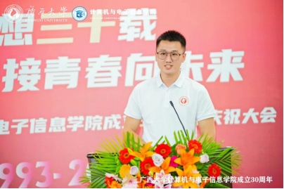 Comrade Zhiming Wang, a 2008 alumnus of Computer Science and Technology and project manager of Guangxi Shangshi Technology Company, expressed his admiration for the development and remarkable achievements of the college. He wished the college continued success and hoped to reunite in the next 30 years.