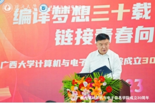 In the solemn "Song of Guangxi University", the celebration of the 30th anniversary of the establishment of the School of Computer and Electronic Information came to a successful conclusion. 30 years of wind and rain, 30 years of spring and autumn, the School of Computer and Electronic Information has gone through 30 years of ups and downs, achieved remarkable results, and also won widespread recognition and high praise from society. In the days to come, we will continue to work together with all alumni, uphold the school motto of "diligence, sincerity, and innovation through thick learning", accelerate the construction of the "Double First Class", and make greater contributions to the early construction of a first-class comprehensive research university with a reasonable layout and distinctive characteristics!