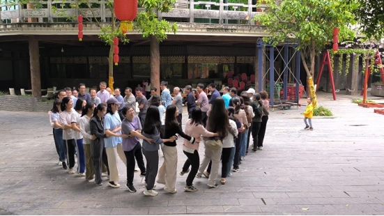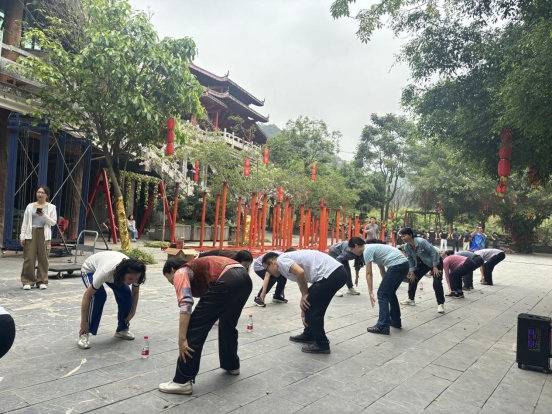 At the beginning of the activity, the teachers warmed up with the rabbit dance to the lively and cheerful music. Subsequently, under the auspices of Yang Yang, a member of the women's labor committee, the teachers formed teams to participate in team building games such as Snake, Crossing the Jungle and Threading the Needle, Grabbing Bottles, and Magic pen Ma Liang. The teachers worked together and cooperated tacitly to complete each project in laughter.